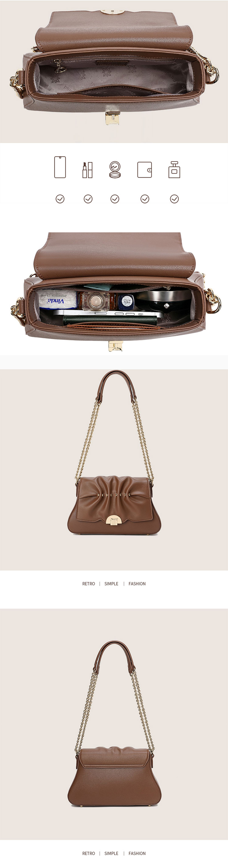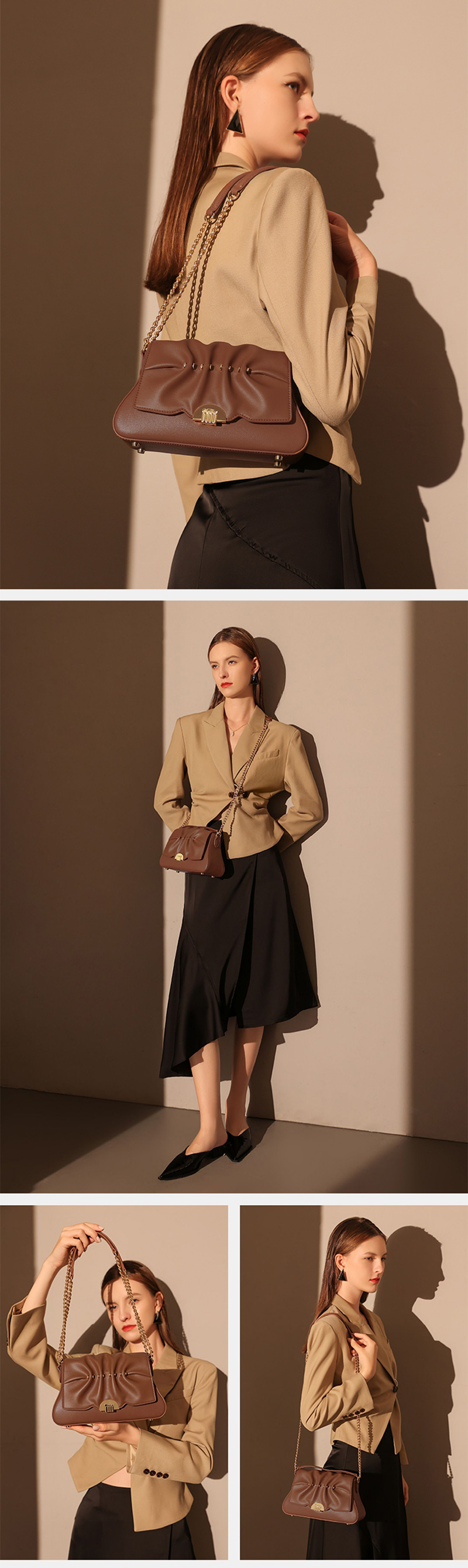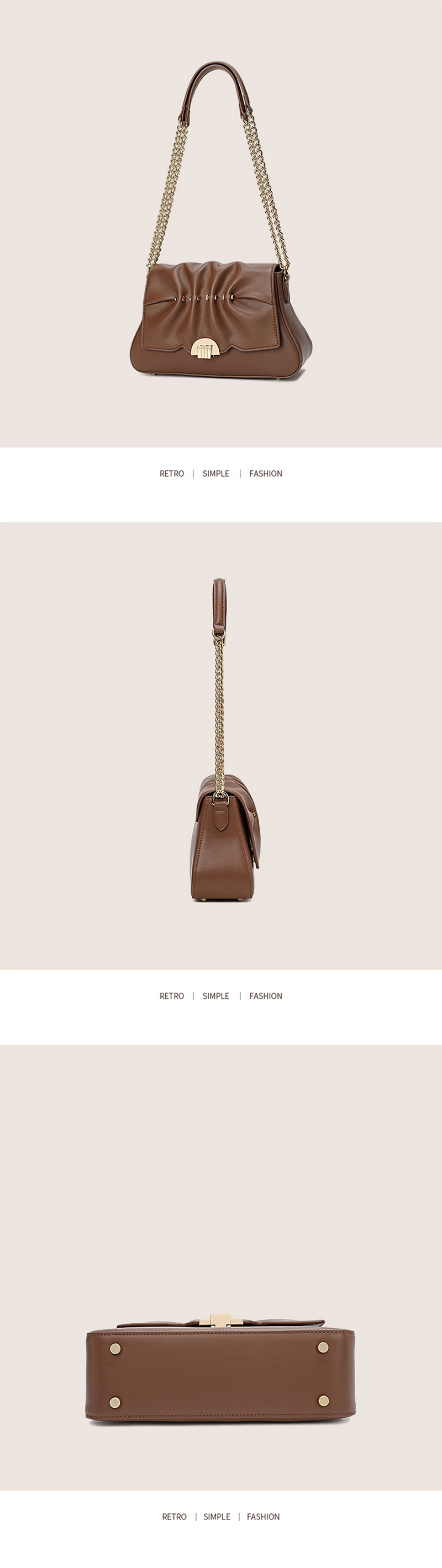 Minimally designed Maillard style pleated small bag, light luxury shoulder bag